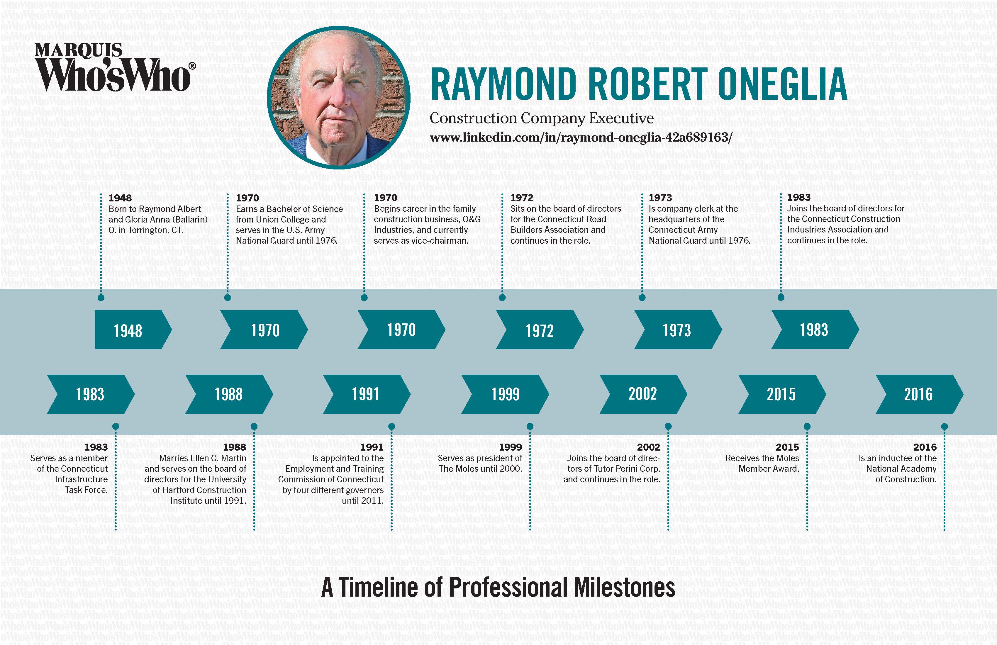 Begins career in the family construction business, O&G Industries, and currently serves as vice-chairman.