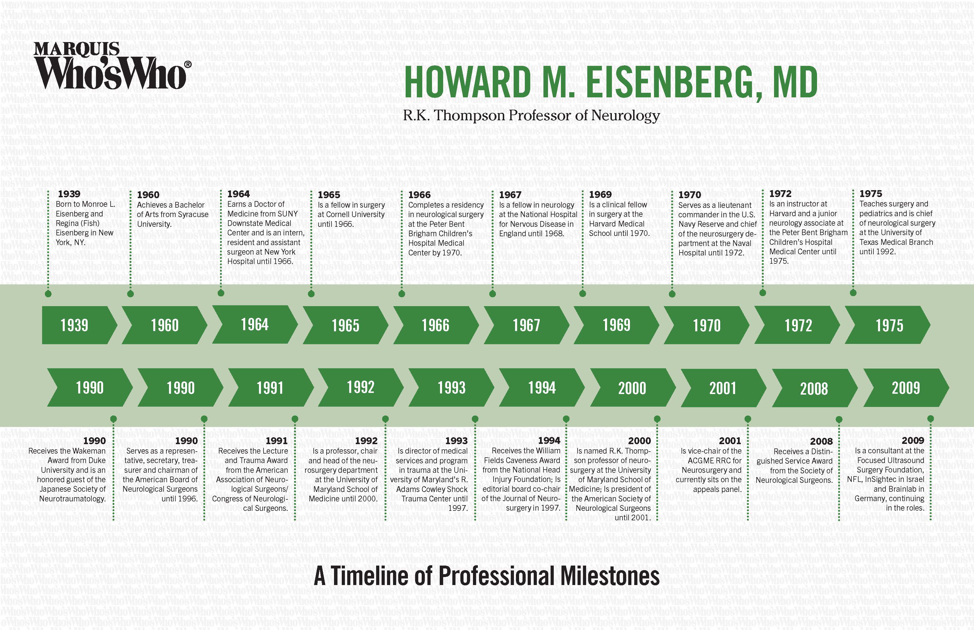 Is named R.K. Thompson professor of neurosurgery at the University of Maryland School of Medicine; Is president of the American Society of Neurological Surgeons until 2001.