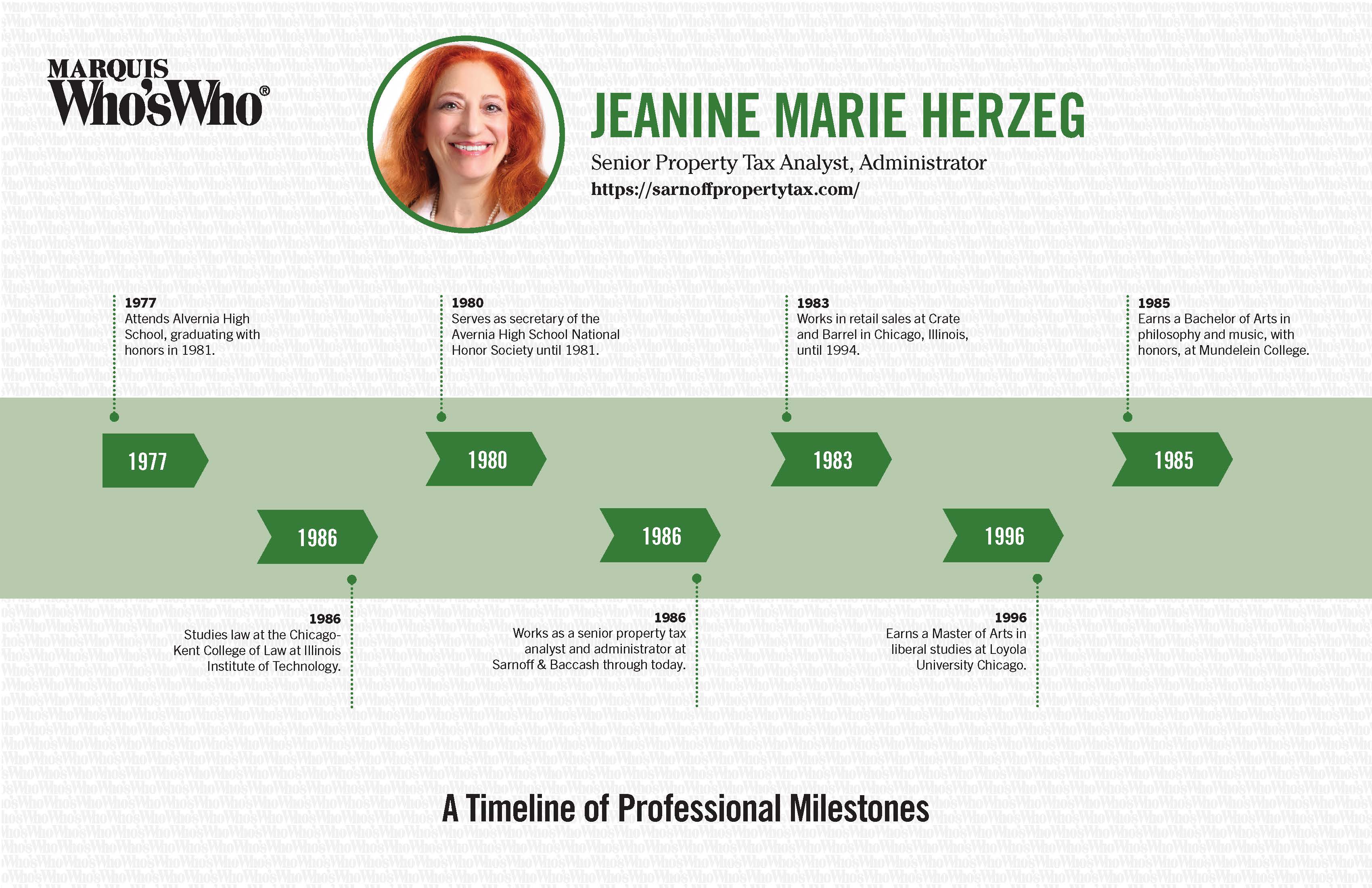 Earns a Master of Arts in liberal studies at Loyola University Chicago.