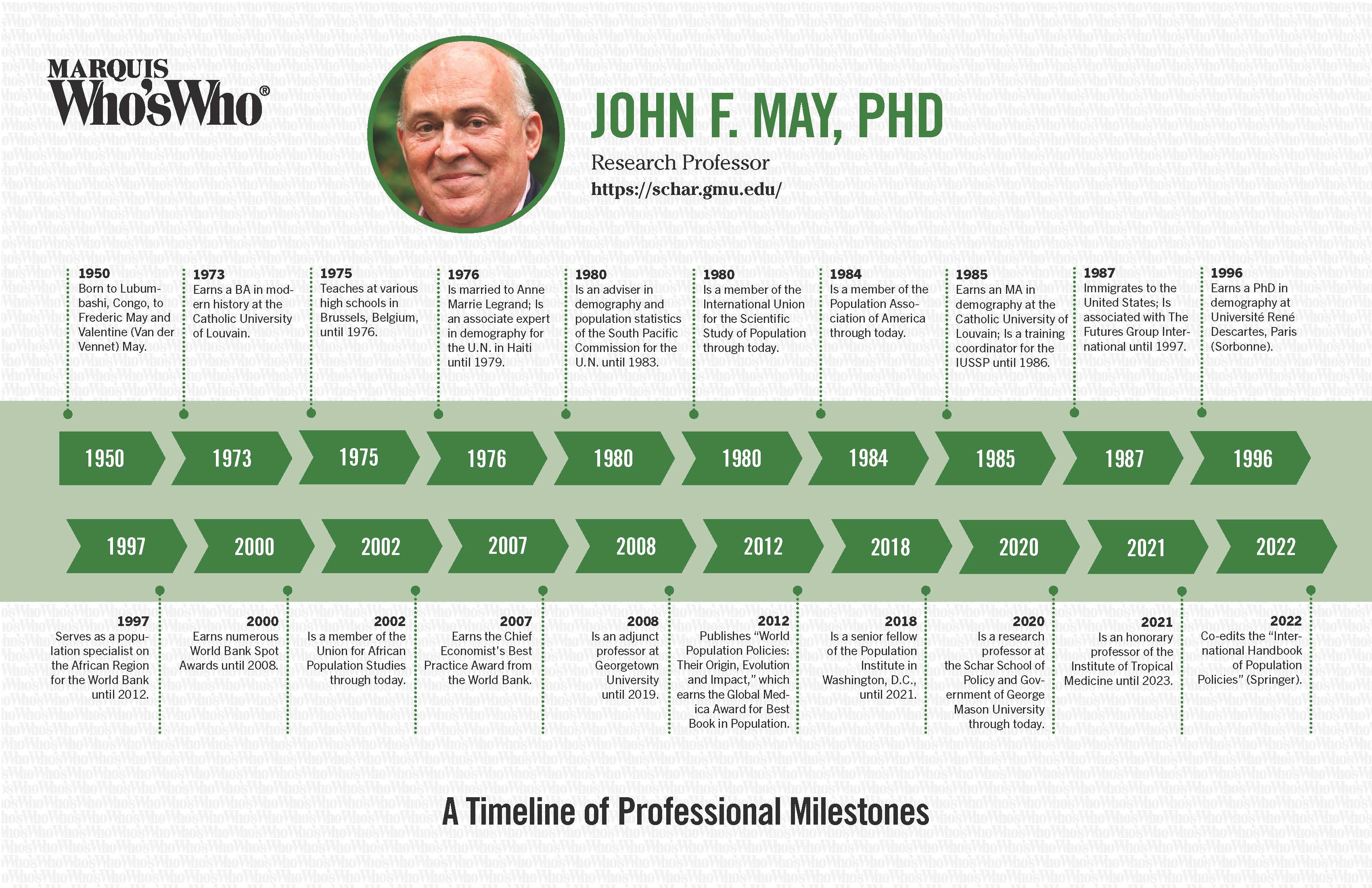 Earns a PhD in demography at Université René Descartes, Paris (Sorbonne).
