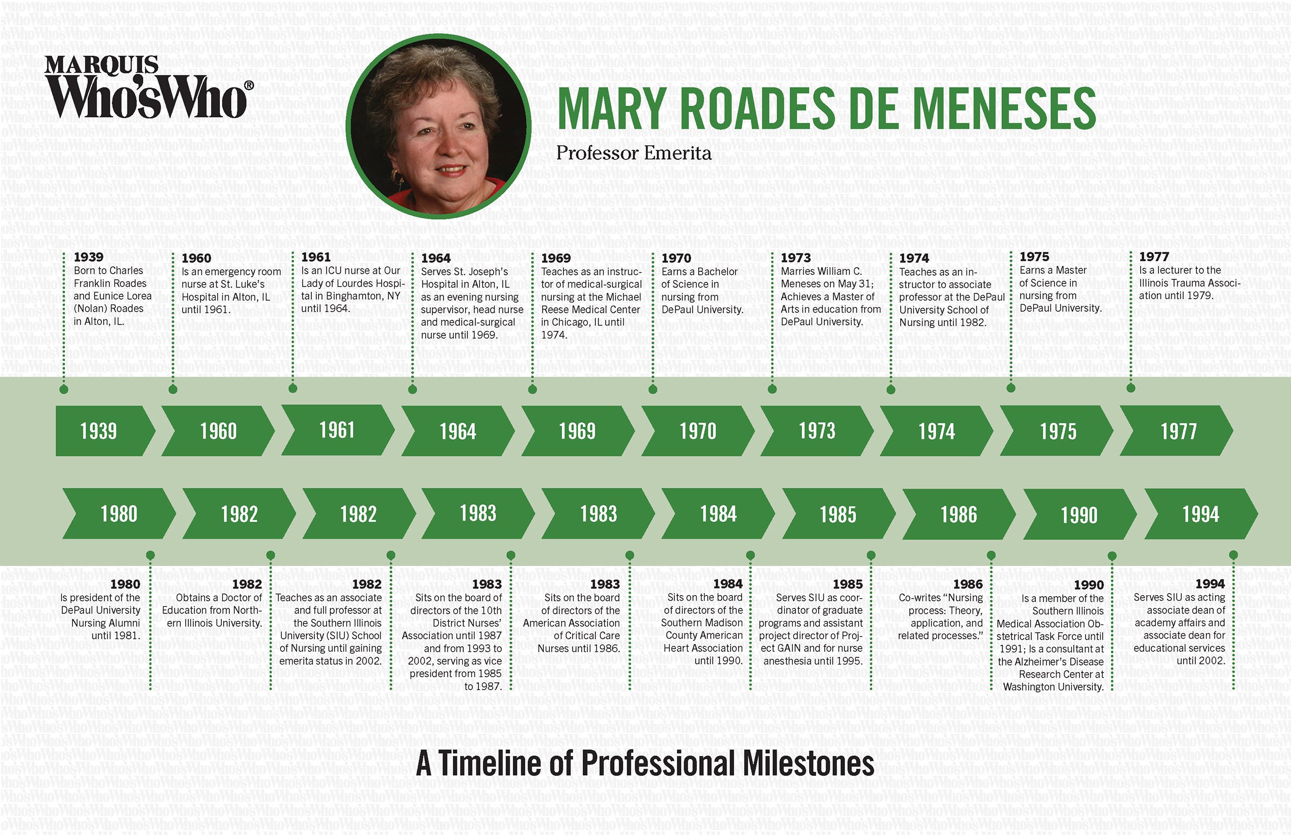 Earns a Master of Science in nursing from DePaul University.