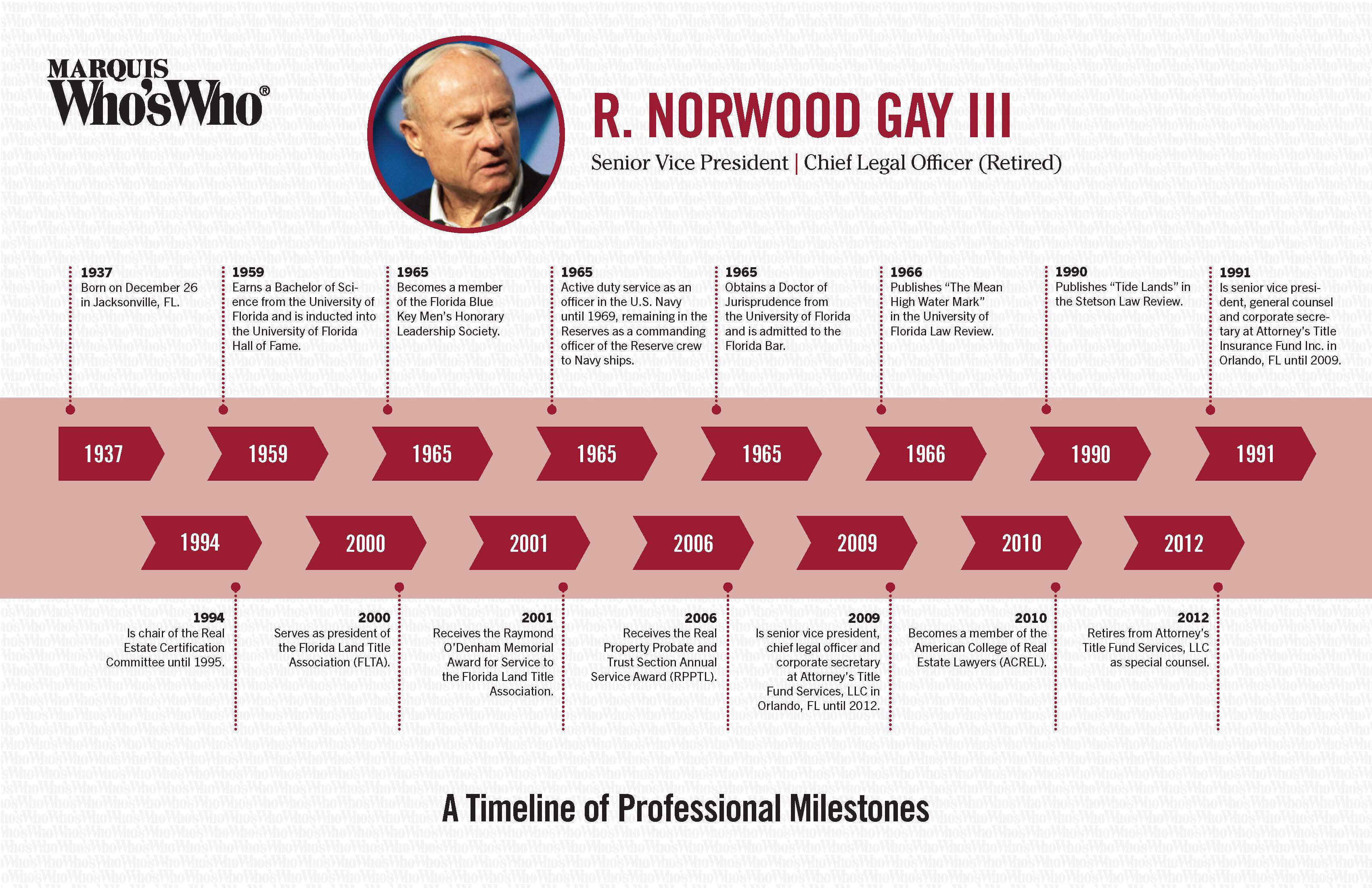 Is senior vice president, general counsel and corporate secretary at Attorney’s Title Insurance Fund Inc. in Orlando, FL until 2009.