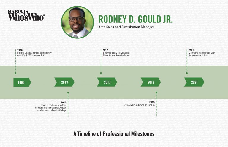 1990 Born to Dearie Johnson and Rodney Gould Sr. in Washington, D.C. 2013 Earns a Bachelor of Arts in economics and business/African studies from Lafayette