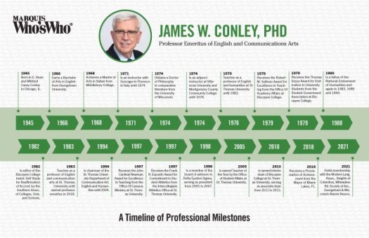 1945 Born to E. Dean and Mildred Casey Conley in Chicago, IL. 1966 Earns a Bachelor of Arts in English from Georgetown University. 1968 Achieves
