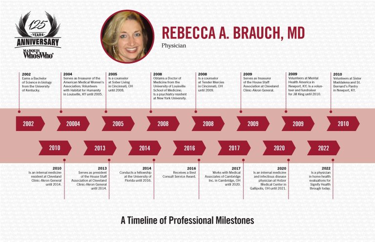 2002 Earns a Bachelor of Science in biology from the University of Kentucky. 2004 Serves as treasurer of the American Medical Women’s Association; Volunteers with