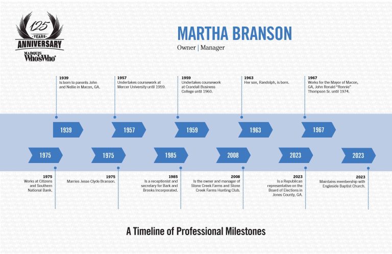 1939 Is born to parents John and Nellie in Macon, GA. 1957 Undertakes coursework at Mercer University until 1959. 1959 Undertakes coursework at Crandall Business